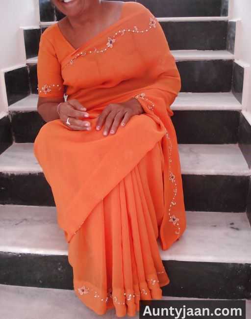 Aaj inn desi aunty ne ghar ka kaam karne se pehle orange color ki saree pehni hai. Jahan sabse pehle aunty saree sex ke maje apne viewers ko dena ka sochti hai. Jiske liye woh apna photoshoot hi karwaana pasand hai aur jaakar apne ghar ki stairs par orange color ki saree pehnkar baith jaati hai. Jiske baad unka photoshoot start ho jaata hai aur woh haste huye apne stairs par baithkar apni photos click karwaane lagti hai.